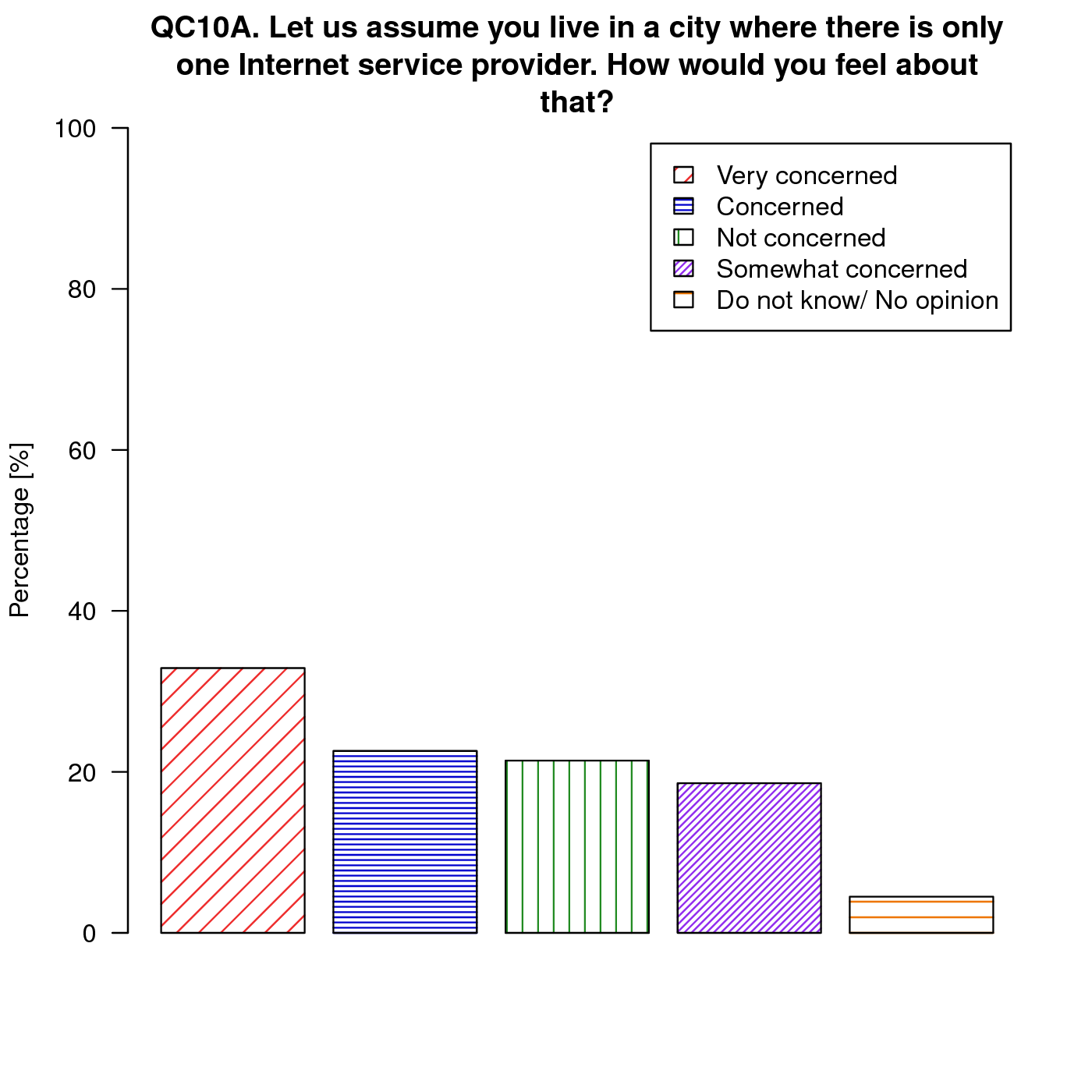 Questions QC10 to QC13 are on monopolies, and examine attitudes towards the dominant presence of an Internet service provider, social networking site, or search engine (questions QC10 to QC13). We also have included one question on consideration of alternatives (question QC13).